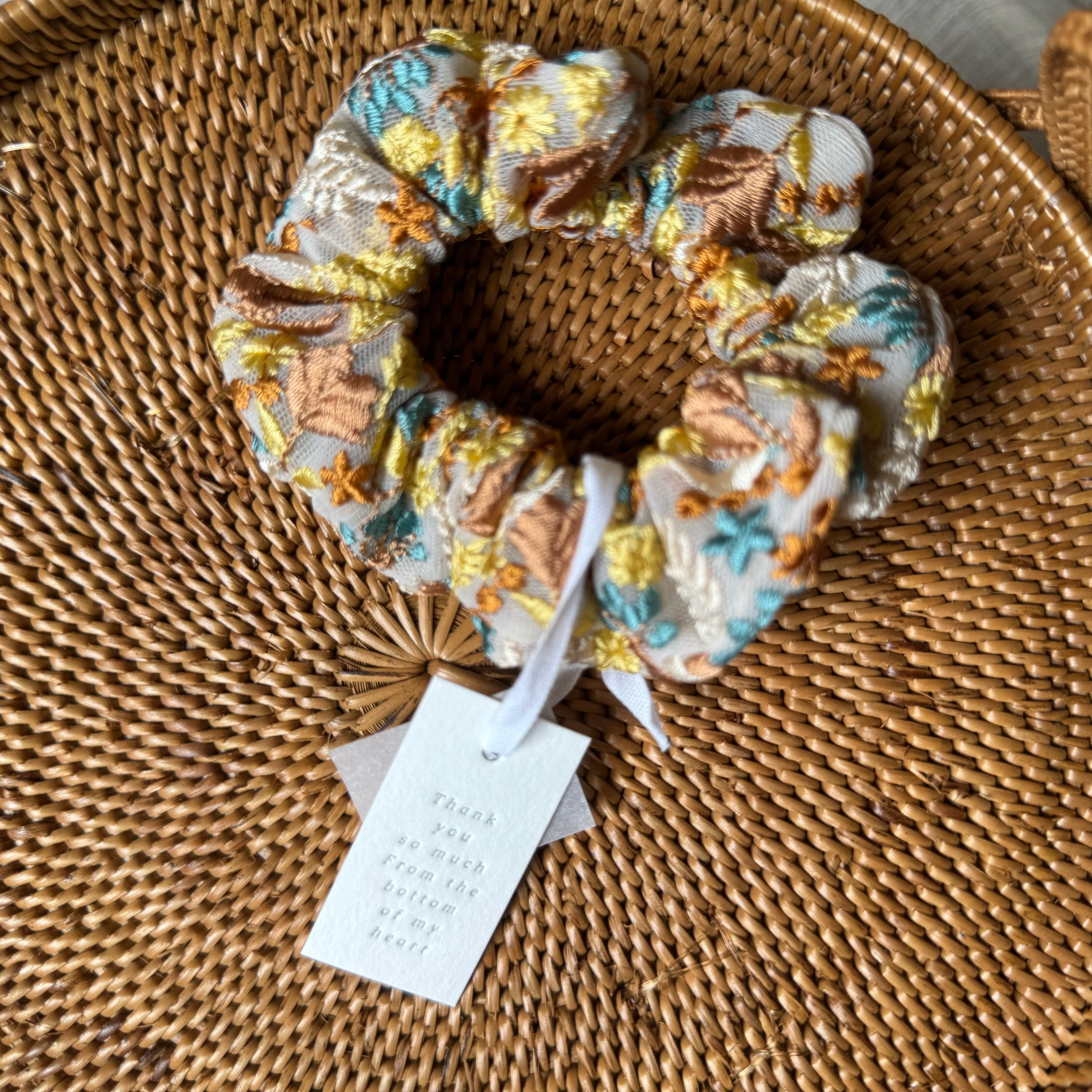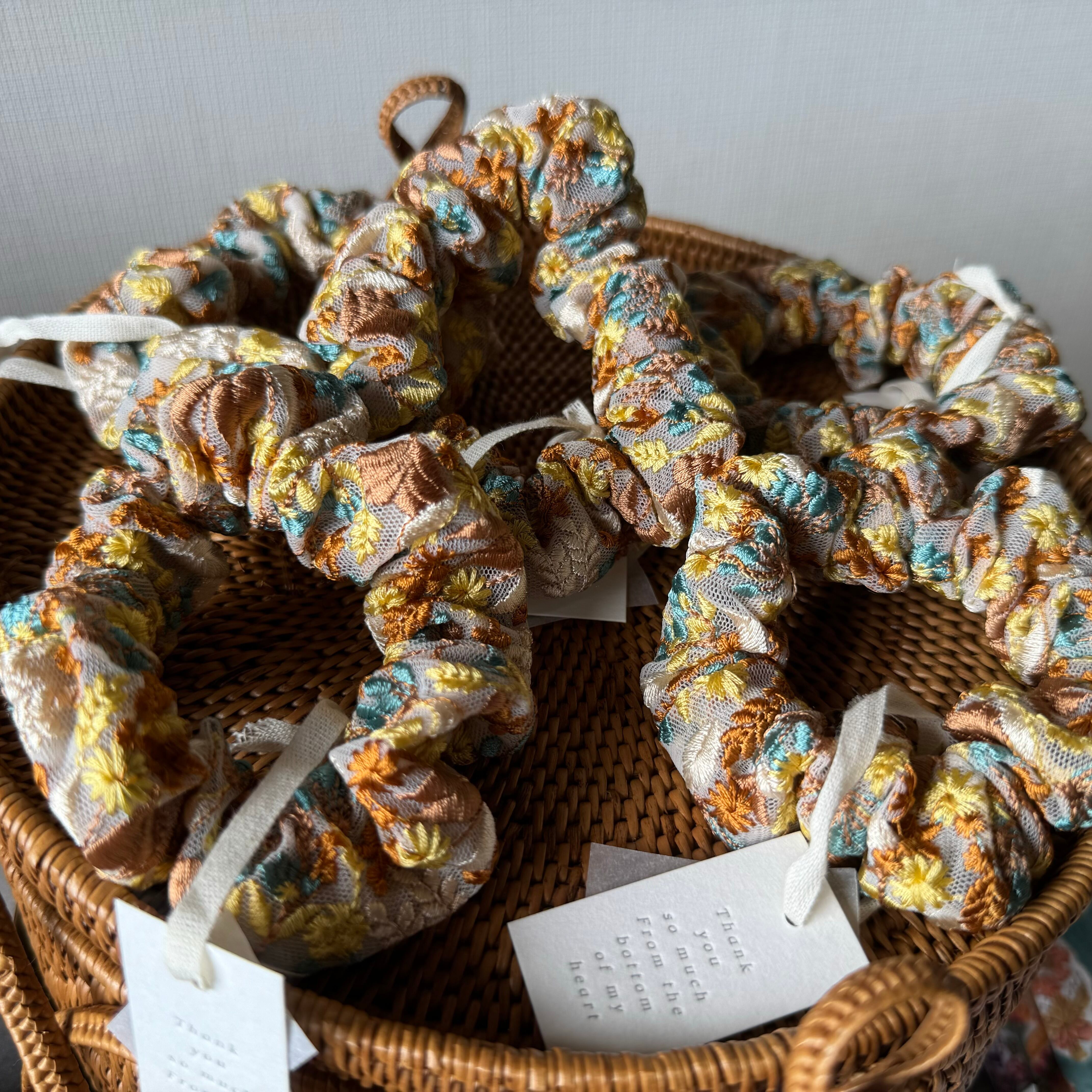 インド刺繍リボンで仕立てたシュシュ。