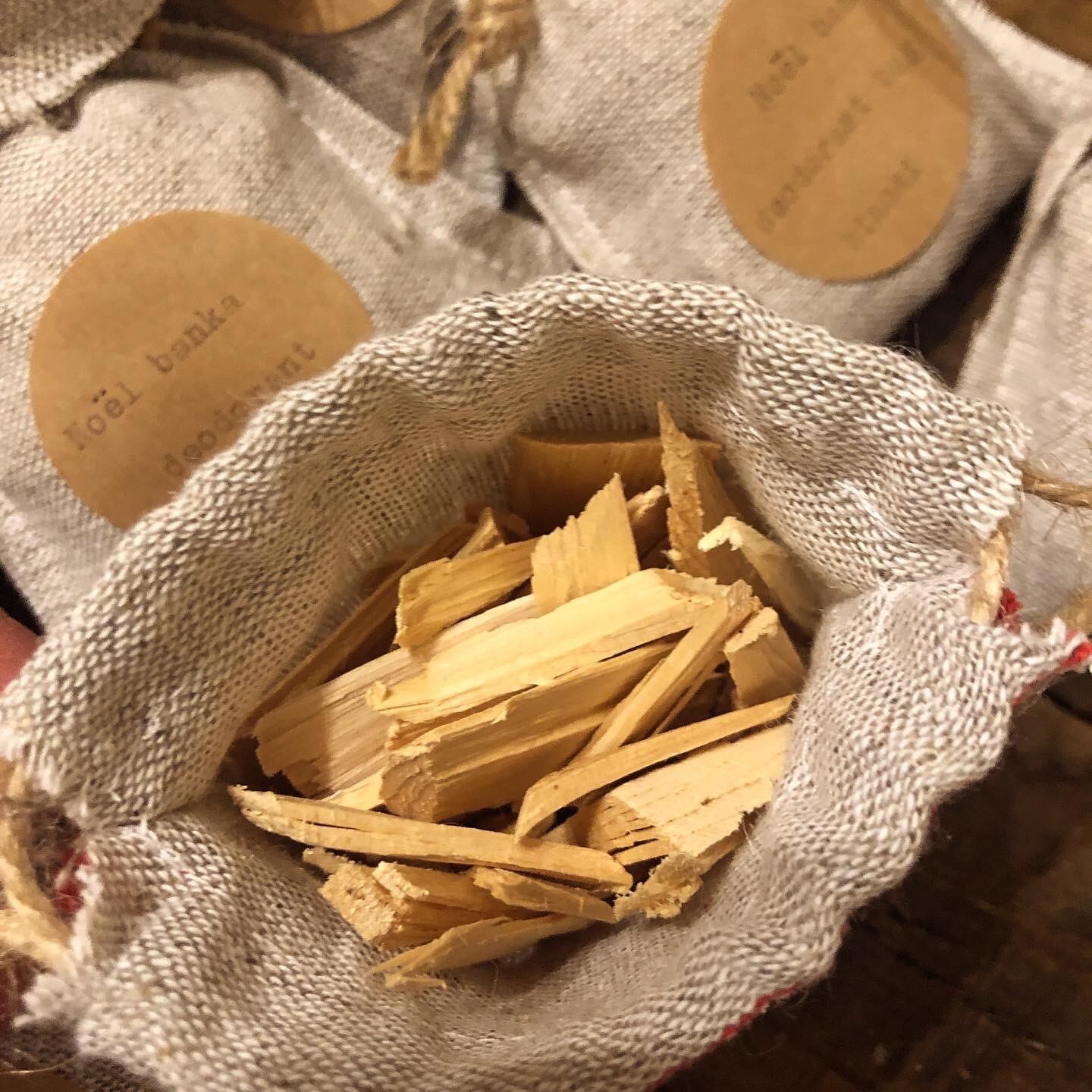 奈良県吉野産のひのきチップを麻の袋に詰め込んで使ったデオドラントバッグです。